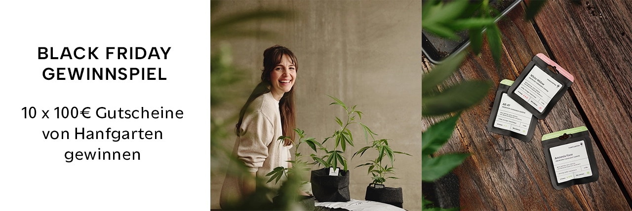 Noch pünktlich vor dem Black Friday verlosen wir 10 × 100 € Gutscheine für den Hanfgarten! Nutze jetzt deine Chance auf ein großzügiges Extra – perfekt, um dein Grow-Projekt auf das nächste Level zu bringen oder dir deine Lieblingsprodukte zu gönnen.